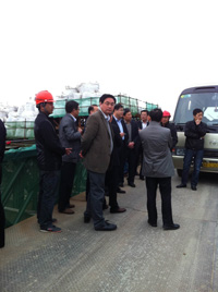 2013年4月22日下午三时许,市委副书记、市长陈晓东在市纪委书记蔡忠、副市长陈万圣、市政府党组成员万维庆及交通局主管领导的陪同下视察了路翔企业丁磨线西延工程项目现场。当了解到这项重点工程是由我们如皋本地的施工企业承建时,陈市长非常高兴。接着,陈市长又向项目经理许银华详细了解了项目进展情况:如港公路至新204国道段,已完成水稳施工;从马塘加油站至如港公路段沥青上面层摊铺已完成80%以上、4月底可全面完成;如海河大桥正在进行上部结构施工。陈市长重点询问了如海河大桥的施工进展情况,并对道路施工做出了指示,要求不必急于摊铺沥青面层,可以让水稳基层充分成型,勉励项目部人员继续好中求稳、好中求快,在确保安全和质量的前提下,抓住时间节点,加快在建工程的建设速度。