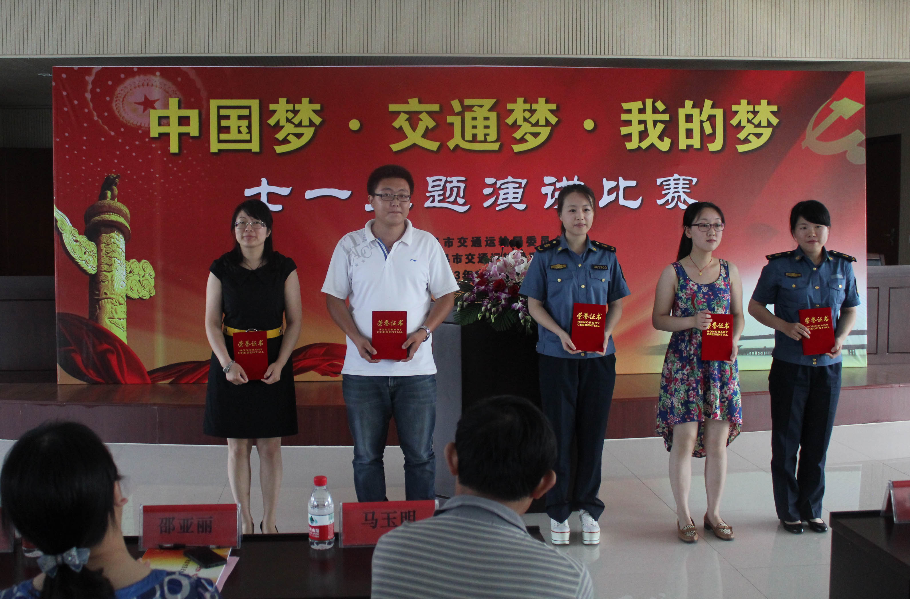 2013年6月28日下午2时许,如皋汽运公司三楼会议室里座无虚席,如皋交通局党委和团委联合举办的“中国梦·交通梦·我的梦”演讲比赛在这里隆重举行。共青团如皋市委、交通局党委主要领导与会担任评委,交通系统各基层单位选送的15位选手会先后上台做精彩演讲。15位选手分别从不同的角度畅谈了自己对中国梦、交通梦的理解,以及如何将中国梦、交通梦与个人梦想相结合、立足本职为梦想的实现而努力。我们路翔企业推荐的选手张新昕代表公司参赛,他演讲的题目是“人类因梦想而伟大,世界因你们而精彩”,他充满激情的演讲充分展现了路翔人的风采,赢得了现场阵阵热烈的掌声。张新昕最终以95.4分的好成绩荣获三等奖。(总经办 梅广军)