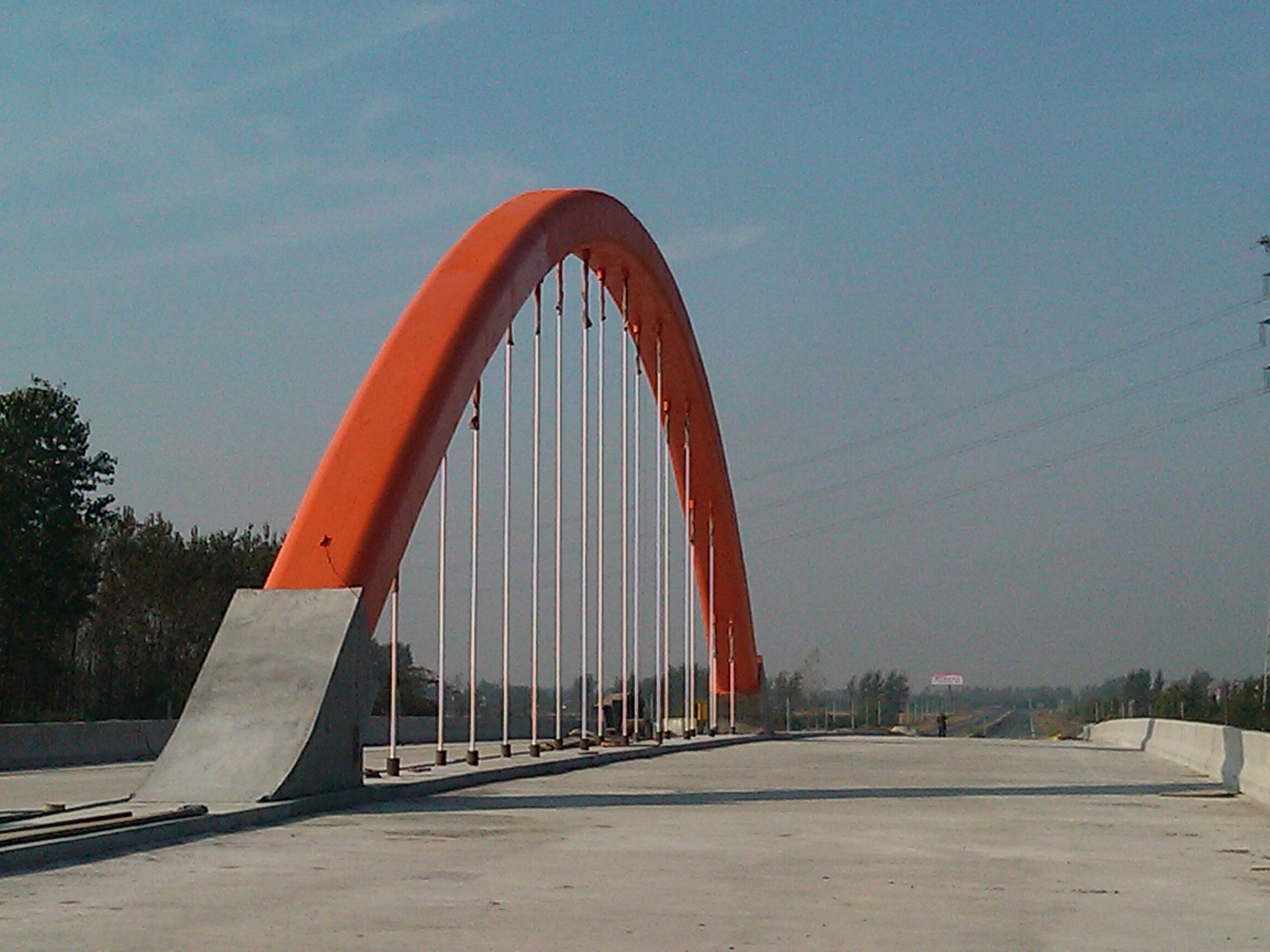 我公司承建的丁磨公路西延工程如海河大桥钢管砼拱肋于