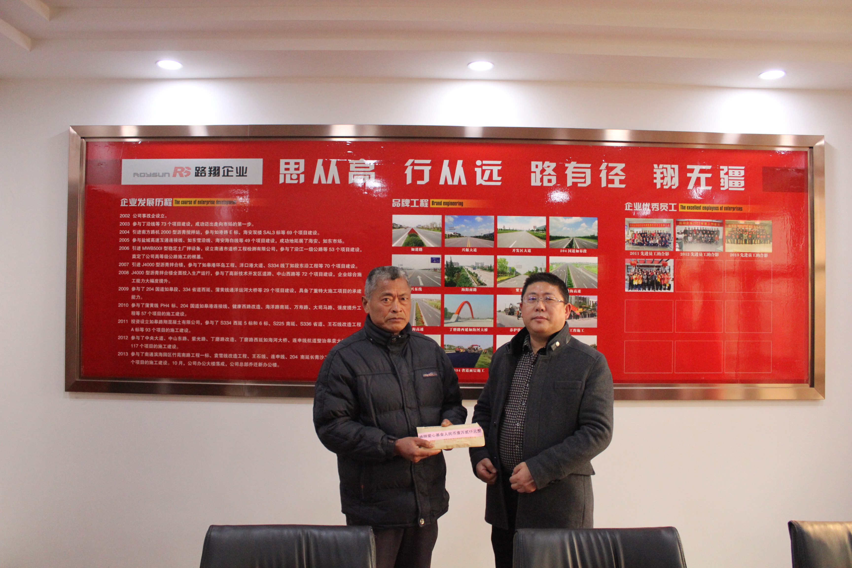 2014年12月,在市慈善基金会领导的关心和支持下,路翔企业发起成立了路翔爱心基金,专门用于本市地区性的扶贫助困、捐资助学、灾害救助、社区建设、传统文化教育及其他慈善资助活动。“路有径、爱无疆、翔无涯”,我们坚信:有了路翔爱心基金这个回馈社会的平台,路翔人一定会将爱的接力棒更好地传承下去并发扬光大。[总经办 朱洪钢] |