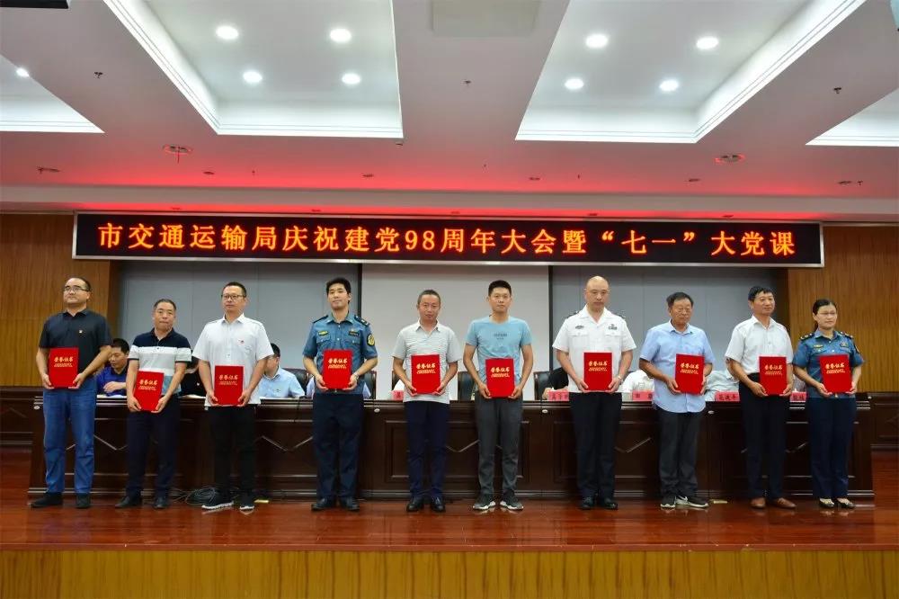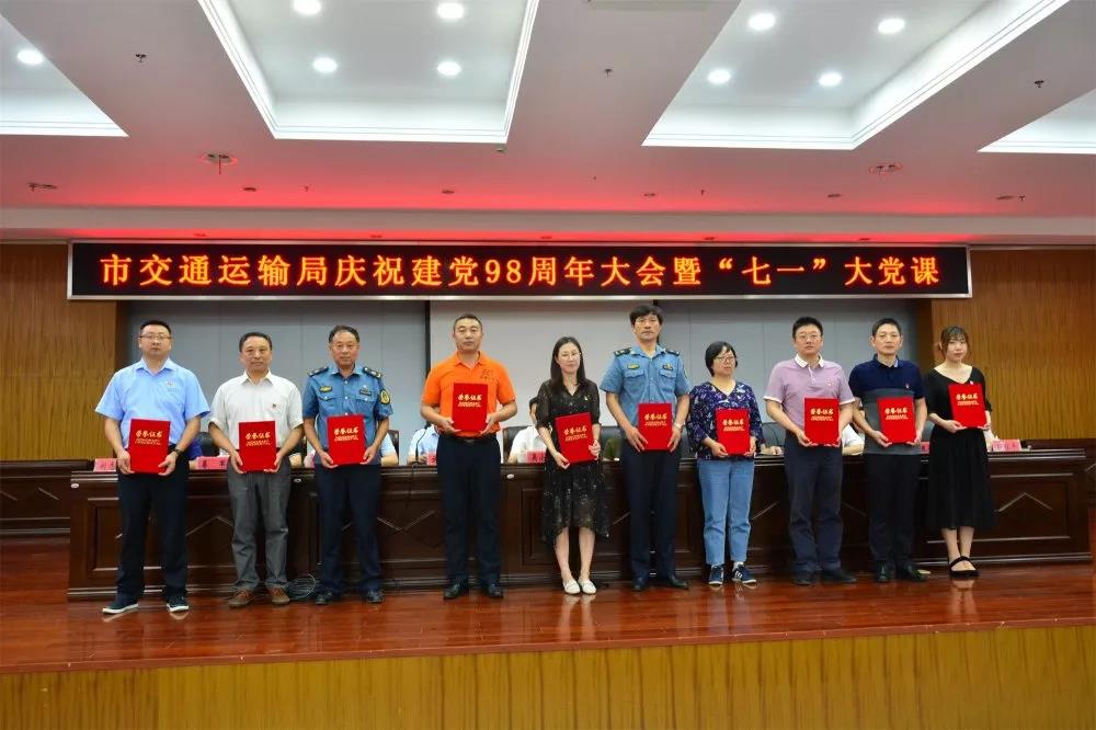 7月5日上午9:00,市交通运输局行政服务中心三楼报告厅隆重举行了庆祝建党98周年大会暨“七一”大党课活动。局党委班子全体成员、各基层党组织书记、交通运输系统党员干部代表,各工程指挥部、中建集团如皋项目部代表以及重点港口企业、星星公交、出租公司等单位的主要负责人参加活动。公司副总经理杨文彬带领党员代表及受表彰人员共8人与会。会上,公司董事长兼党支部书记周红梅、养护分公司经理季伟、路面公司装载机驾驶员谢海军分别被表彰为“优秀党务工作者”、“优秀共产党员”、“最美交通人”。 |